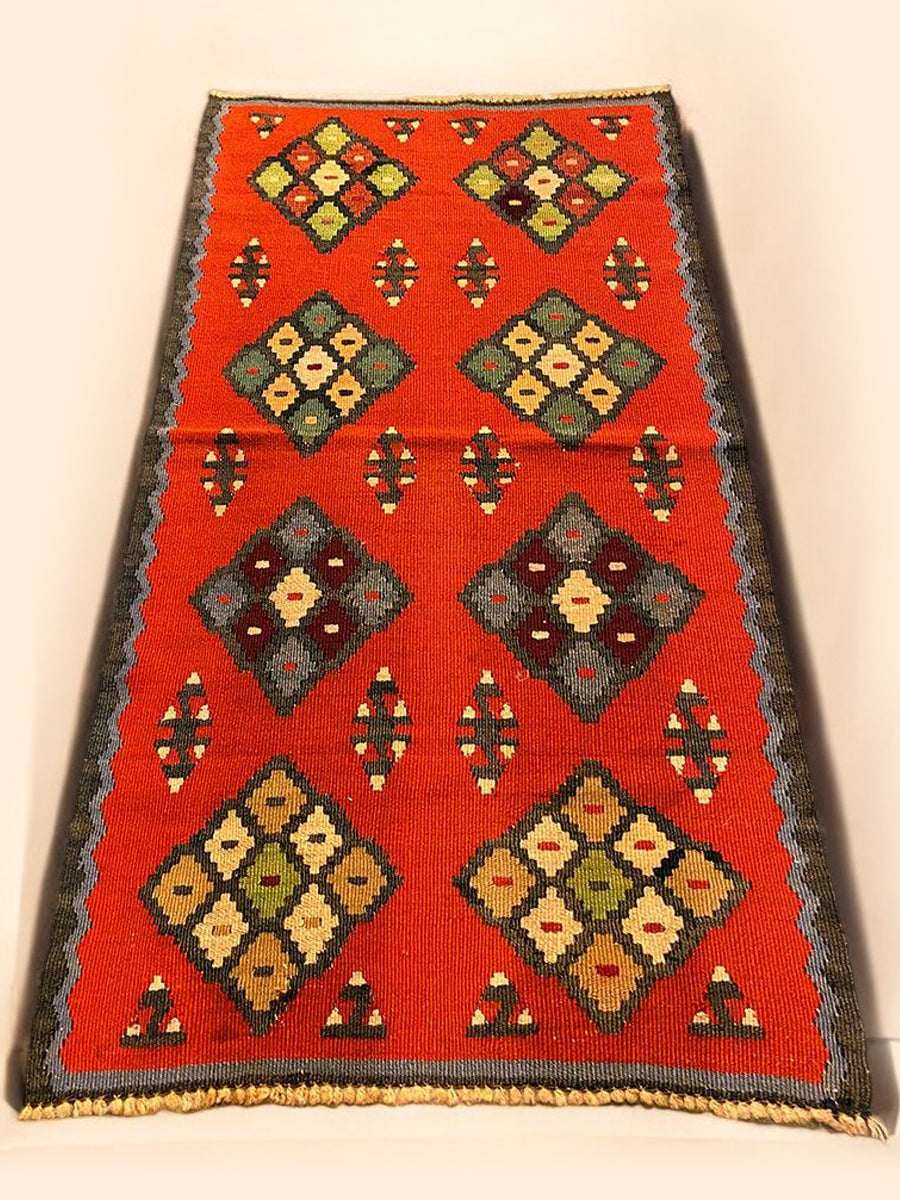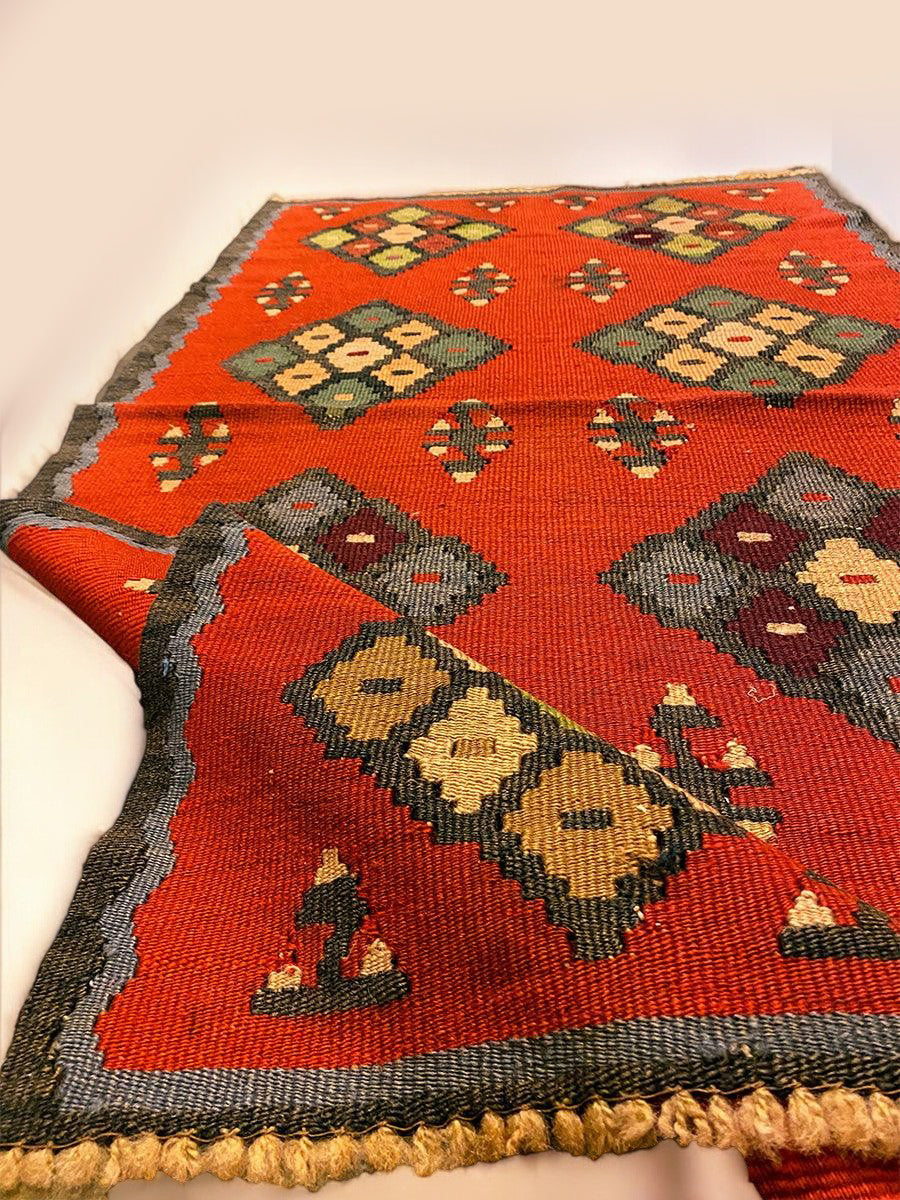 Handgewebte türkische Kelim-Teppiche werden in den türkischen Ägäis- und Mittelmeerküstenregionen hergestellt. Dieser flach gewebte Vintage-Kelim-Teppich aus reiner Wolle ist fachmännisch handgeknüpft und sorgt für langanhaltende Schönheit. Dank der Langlebigkeit dieses schönen Stücks wird Ihr Zimmer lange Zeit den perfekten Vintage-Charme versprühen.