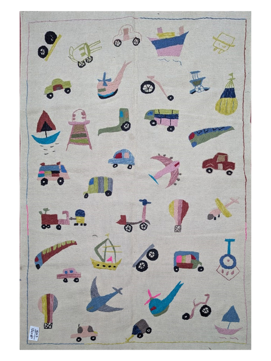 A stunning hand-embroidered textile panel that blends art with heritage. Derived from the Persian word suzan (meaning 'needle'), this Kilim Suzani is handwoven in Pakistan by skilled women artisans using fine wool. Featuring a classic design and rich texture, it is an ethically crafted masterpiece that brings authentic storytelling and warmth to your space.