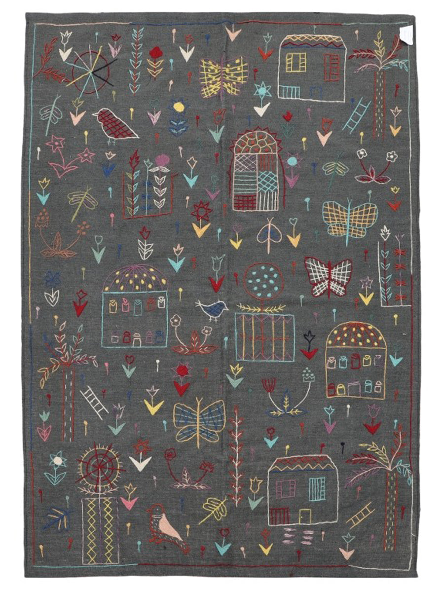 Suzani Rugs are traditional flatwoven, hand-embroidered rugs made in Pakistan.