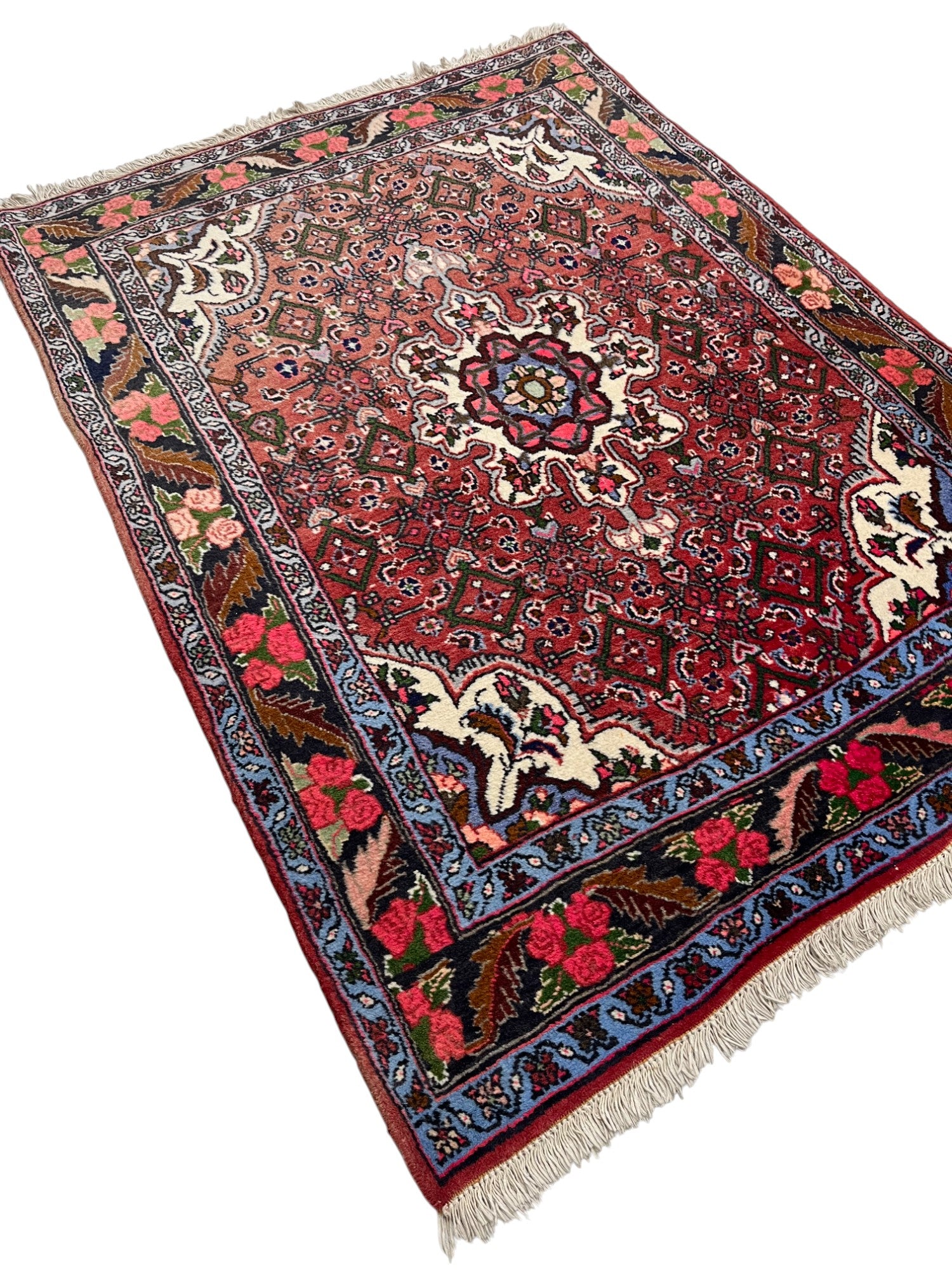 Often called the “iron rugs of Persia,” Persian Bidjar rugs are known for their dense weave and exceptional durability. Crafted in the Kurdish region of western Iran, these wool rugs feature intricate motifs set in bold, structured compositions.