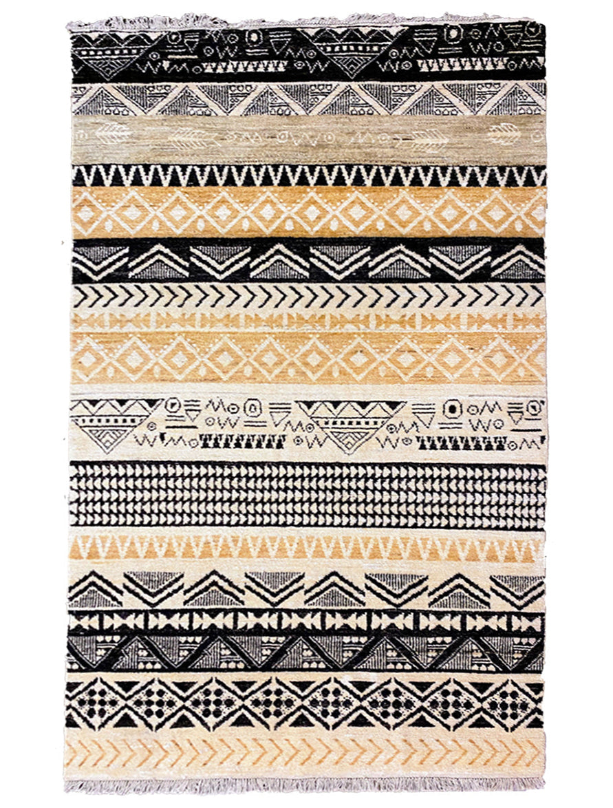 Ines, hand-knotted rug boasts an exquisite blend of geometric patterns in vibrant tones. Diamonds and chevrons are used in tribal-inspired patterns to give an impression of texture. Cultural richness is evoked by elegant visual rhythm and balanced repetition. Its bright yet neutral shade offers warmth, individuality, and artisanal charm to both modern and boho interiors.