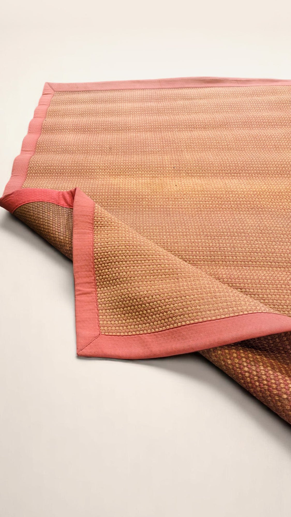 Kavon blends earthy texture with a soft splash of color. Hand-woven in Turkey from natural jute, its warm tan body is framed by a coral border that adds just the right lift. The fine weave offers a subtle pattern, while the crisp edges keep things polished. Think coastal calm meets global soul. Kavon is laid-back but with a thoughtful finish.