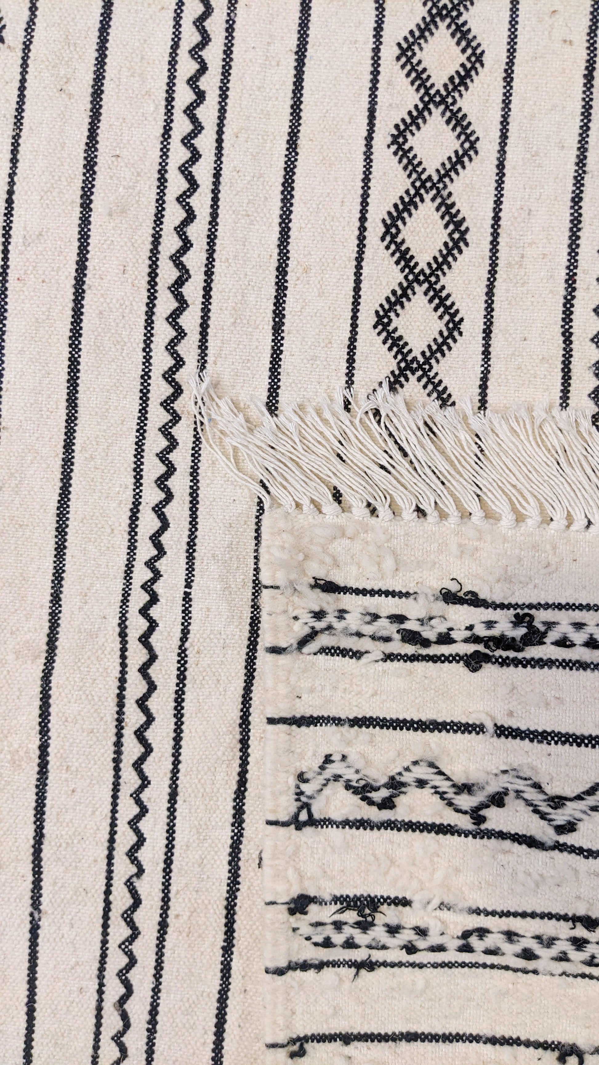 Hand-woven, premium wool masterpiece featuring a timeless white and cream color scheme. Add a touch of elegance to your home or business with this versatile and professional choice.