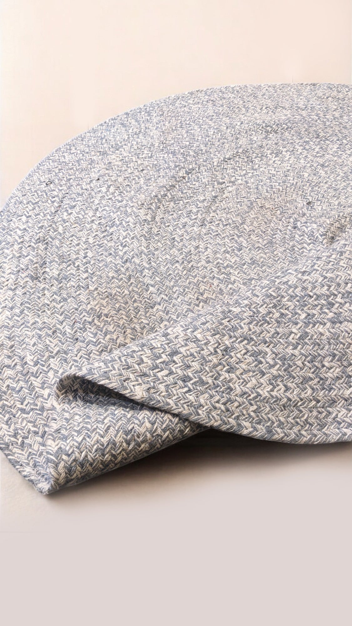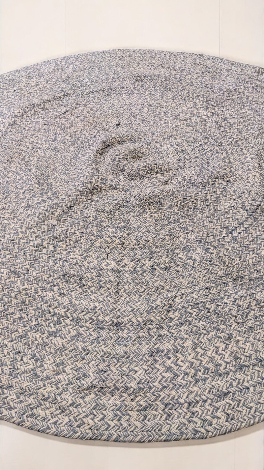 This rug showcases expert hand-weaving with a refined gray and silver color scheme in a contemporary solid pattern. Crafted from high-quality jute, this distinctive round rug serves as an elegant and impactful addition, elevating the aesthetic of any space with its luxurious appeal.