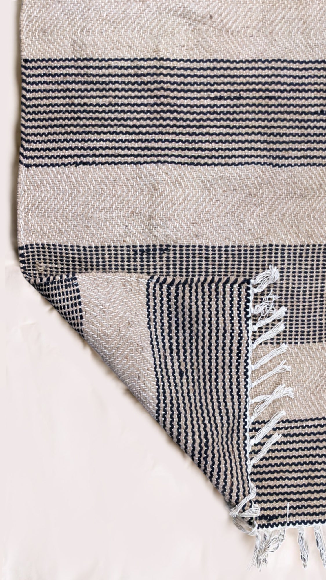 This rug, crafted from natural materials and featuring a classic design, adds refined elegance to any room. Made in Turkey, it combines earthy beige with rich charcoal stripes for a balanced and sophisticated appearance. The organic flatweave texture enhances warmth and dimension, while sturdy jute fibers guarantee long-lasting durability. Ideal for layering or as a focal point, this rug evokes tranquility and a natural ambiance.