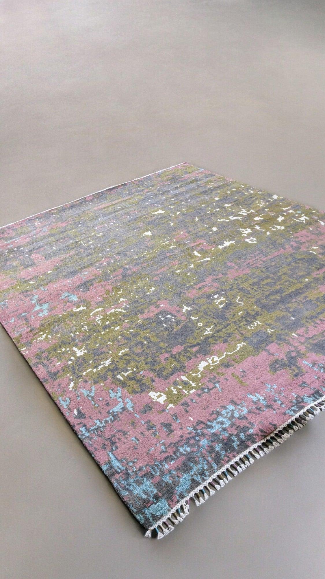 Indulge in luxury with our modern chobi rug, carefully hand knotted to perfection. Its abstract design adds sophistication to any space. This rug is a timeless addition to your home decor. Elevate your style with our exclusive Jade rug.